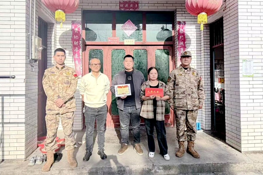 每到一户,工作人员都怀着崇敬之心向新兵家属道贺,双手递上入伍通知书,并合力将“光荣之家”荣誉牌稳稳悬挂在大门显眼位置,荣誉牌的字迹熠熠生辉,不仅为乡村庭院增添了一抹“荣誉亮色”,更让“一人参军、全家光荣”的理念深入人心。