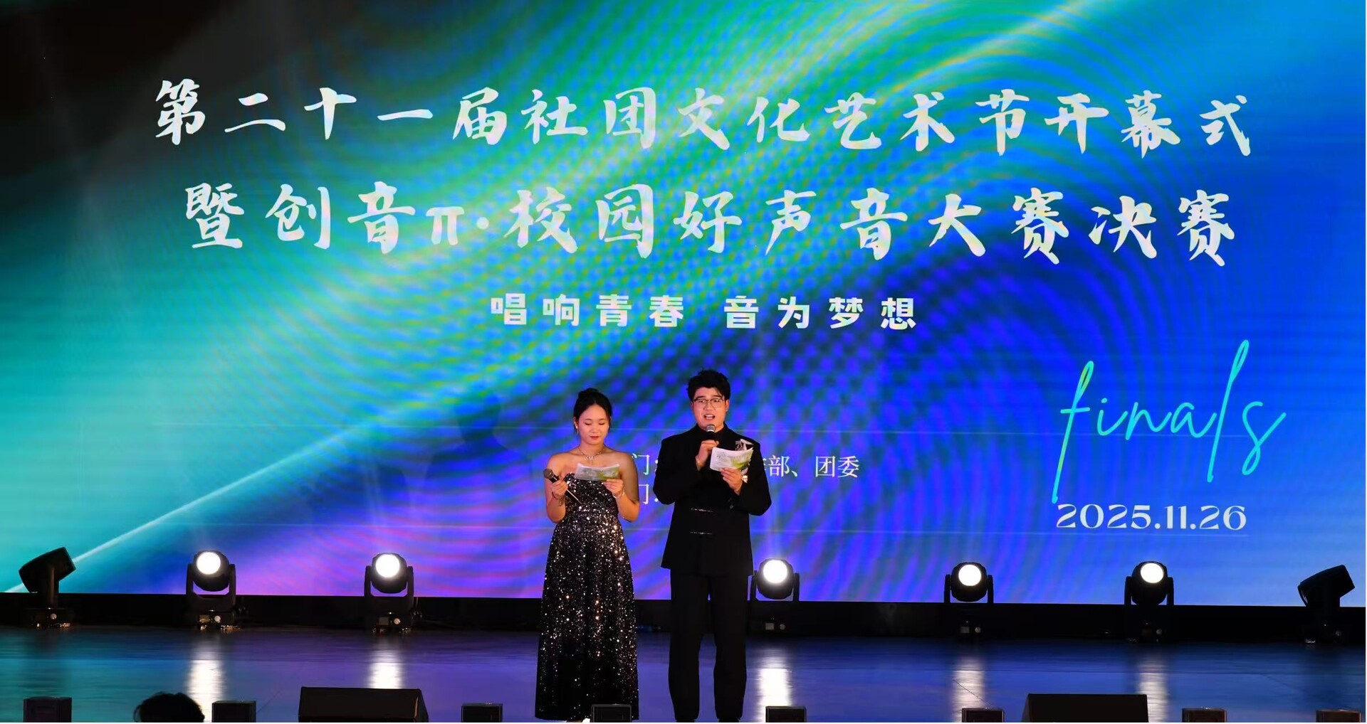 本次活动延续“社团+音乐”的创新模式,累计吸引校内外超5000人次参与,线上直播观看量突破5万。这场盛会不仅展现了学子们的艺术追求,更彰显了新时代青年“以文化人、以艺通心”的担当。随着颁奖礼的落幕,本届校园好声音大赛也画上圆满句点,但青春的旋律永不散场。从即日起至2026年5月,全校30余个学生社团还将陆续推出英语知识竞赛、羽毛球趣味竞赛、“青春思辨·强国有我”等社团特色活动,为热爱传统文化、科技与艺术的学子搭建展示自我、绽放光彩的舞台。