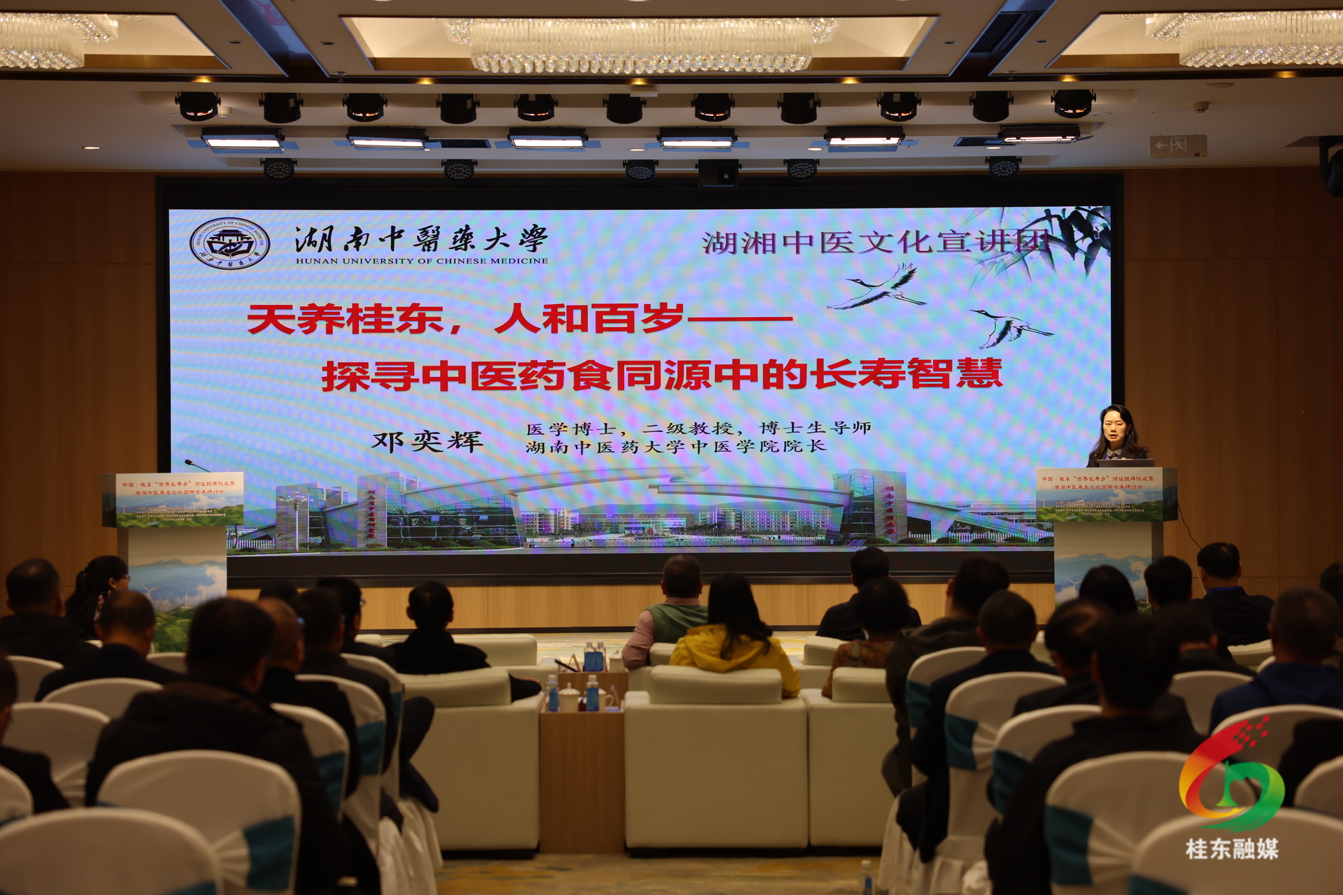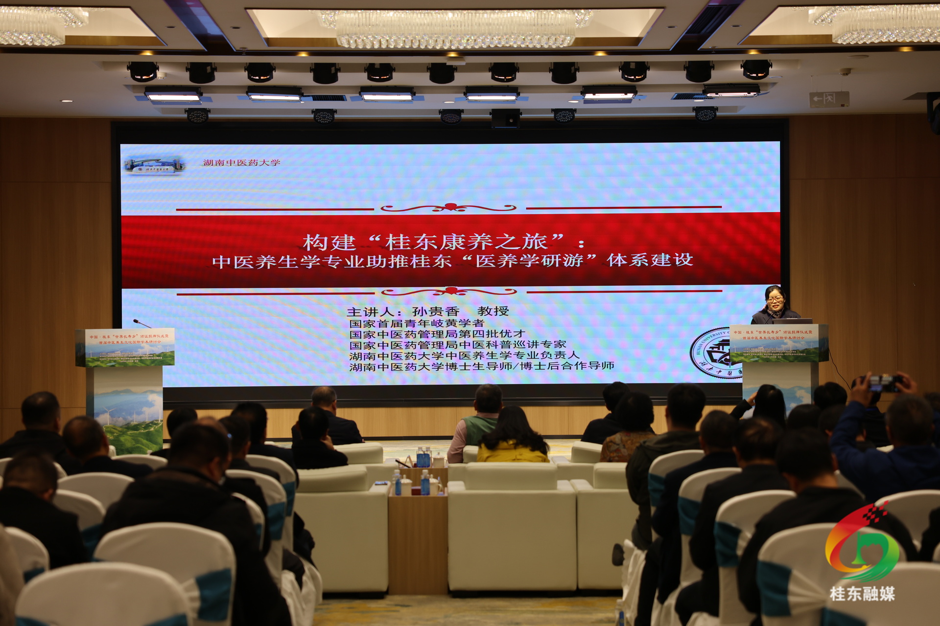 湖南中医药大学中医学院院长邓奕辉教授、湖南中医药大学中医养生学专业负责人孙贵香教授分别以《天养桂东,人和百岁:探寻中医药食同源中的长寿智慧》《构建“桂东康养之旅”:中医养生学专业助推桂东“医养学研游”体系建设》为题作主旨报告,为桂东打造“医养学研游”康养体系提供了前瞻思路和落地路径。