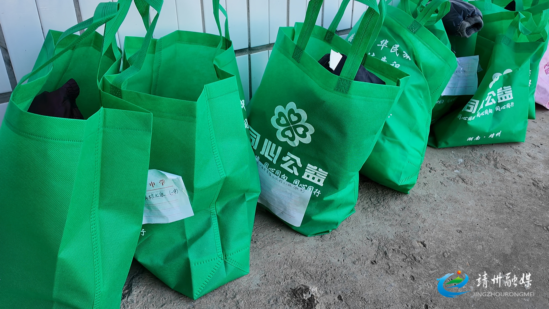 小平房里,整齐堆放着二十多个包裹。叠好的棉衣按尺码排列,棉鞋用袋子装在一起,书本和笔分装在透明袋里,每件物资贴着泛黄的便签——“龙于作 靖州平茶镇江边村十二组”“姚思秀 平茶镇界牌村七组”。