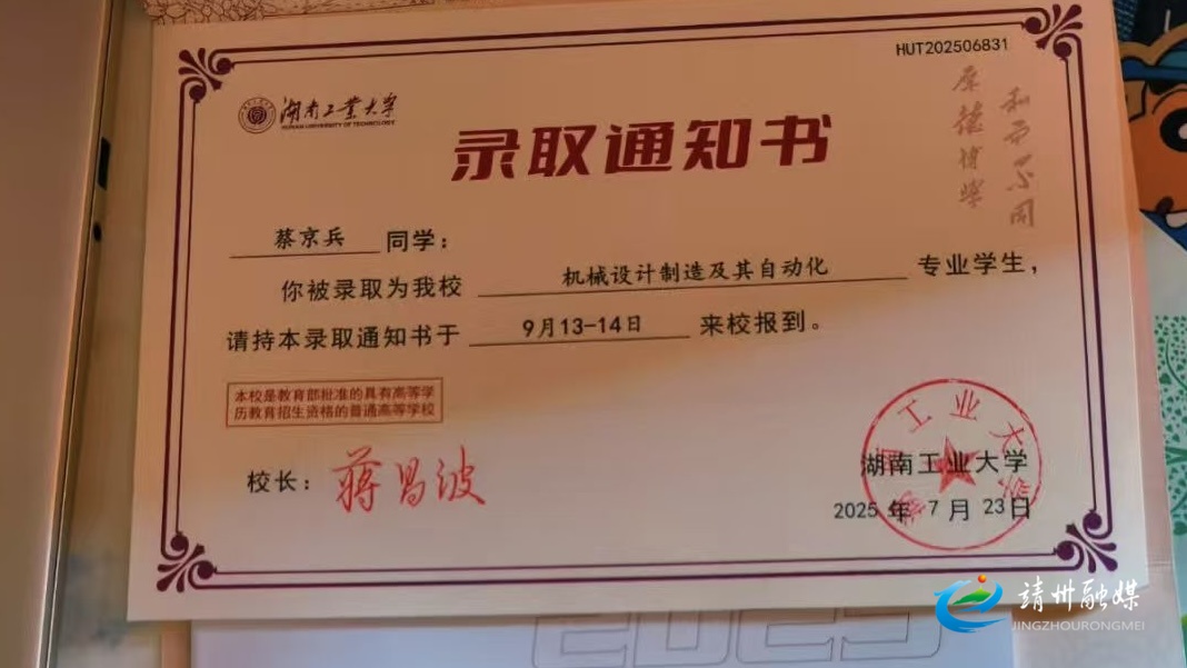 蔡京兵大学录取通知书(周仁翠 供图)