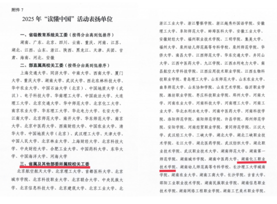 湖南化工职院荣获教育部关工委2025年“读懂中国”活动表扬单位并斩获最佳微视频奖