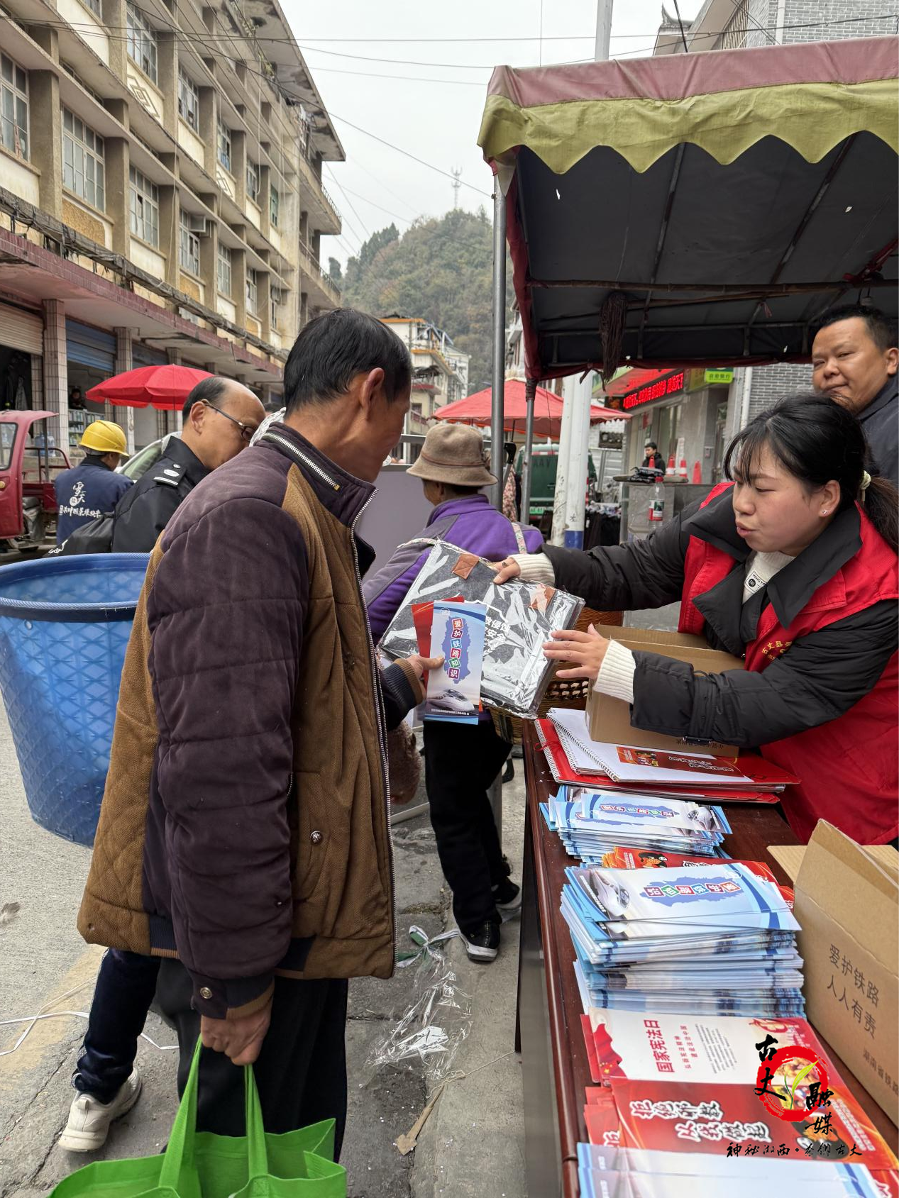 古丈融媒12月4日讯(通讯员 陈瑞)在第十二个“12·4”国家宪法日暨全国法制宣传日来临之际,为深入践行习近平法治思想,大力弘扬宪法精神,以法治力量赋能基层治理、护航平安古丈建设,12月4日上午,古丈县委政法委联合县委宣传部(县文旅广电局)、县人民法院、县人民检察院、县公安局、县司法局及默戎镇人民政府,聚焦群众法治需求,深入默戎镇集市与墨戎苗寨景区,开展主题鲜明、形式多元的平安建设集中宣传活动,推动法治宣传教育从“灌输式”向“互动式”转变、从“会场”向“现场”延伸,让宪法精神与法治理念在基层落地生根、浸润民心。
