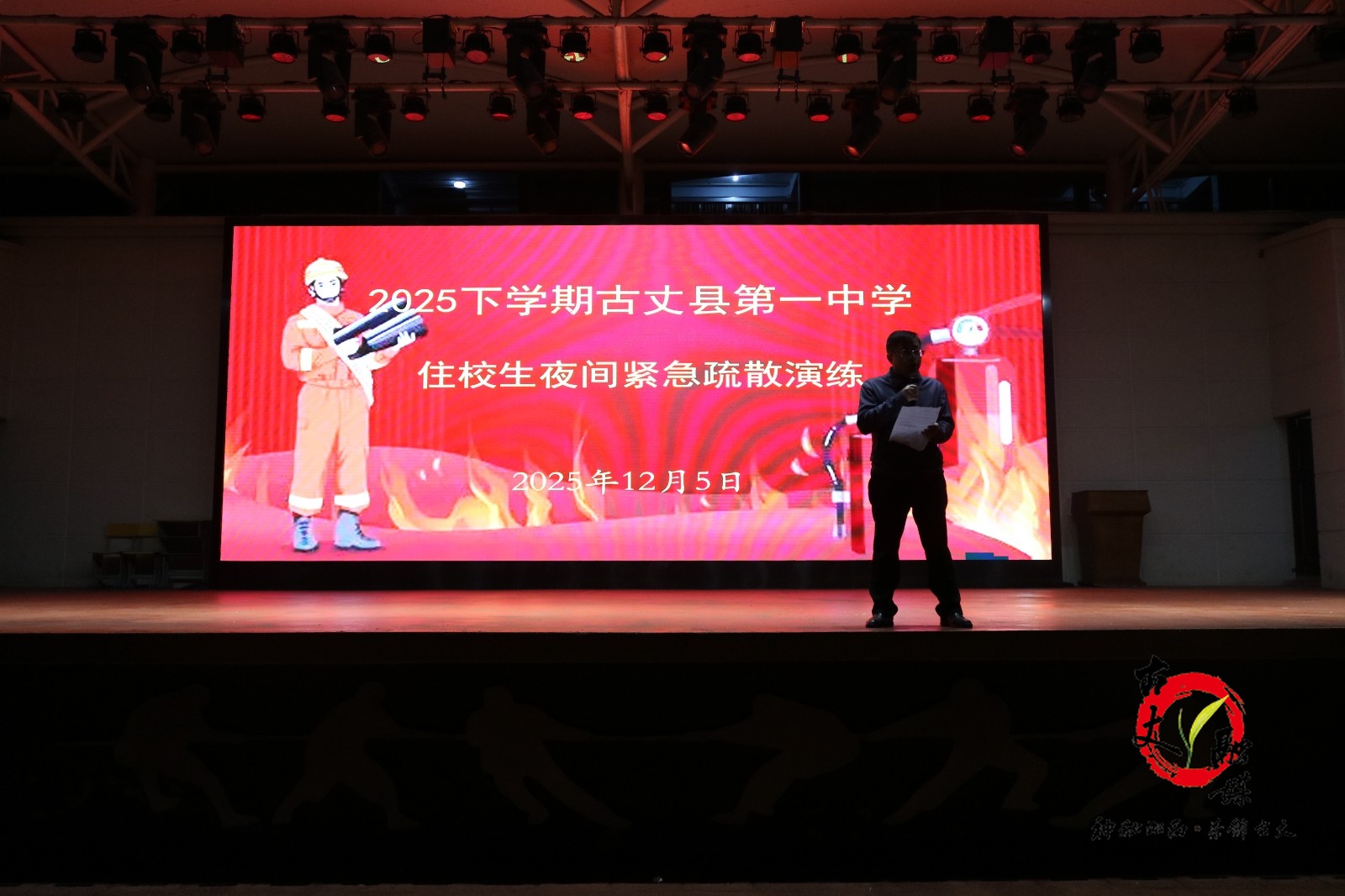 古丈融媒12月8日讯(通讯员 向邦龙 向圣云)为进一步强化校园消防安全教育,提升住校生夜间应急避险能力,筑牢校园安全防线,12月5日晚,海亮教育·古丈县第一中学组织全体住校生开展了一场夜间消防应急疏散演练。此次演练模拟突发火情场景,通过实战化训练检验师生应急反应速度与自救互救能力,为校园安全再添坚实保障。