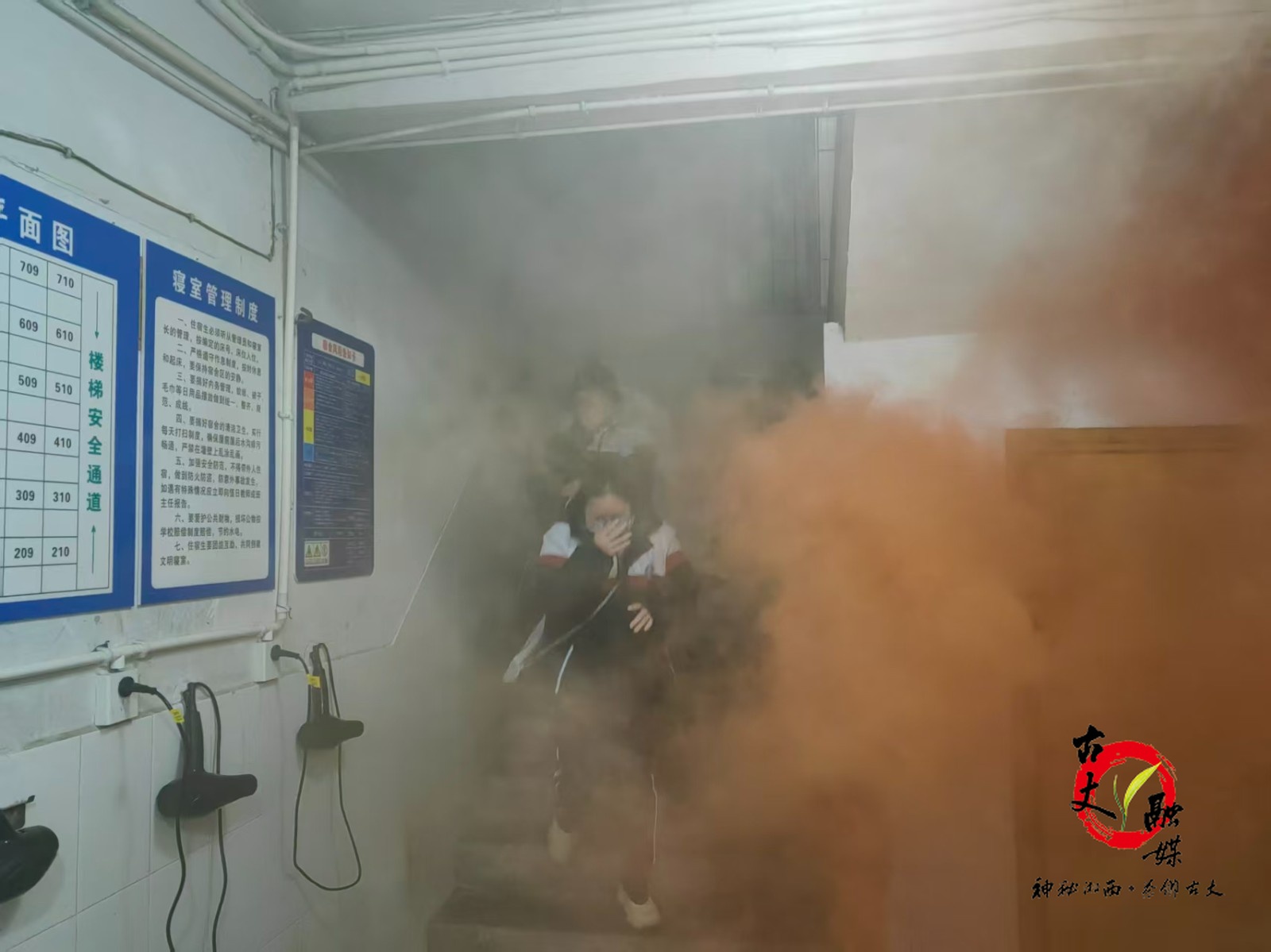 18时59分,随着急促的警报声划破夜空,演练正式拉开帷幕。各宿舍楼值班教师第一时间启动应急预案,迅速到达指定岗位,引导学生用湿毛巾捂住口鼻、弯腰低姿,沿预定疏散路线快速撤离。楼道内,学生们听从指挥、行动敏捷,3分38秒全部安全撤离至德泽体艺广场。各班级负责人立即清点人数并上报,确保无一人遗漏。整个过程紧张有序,展现了师生良好的应急素养。