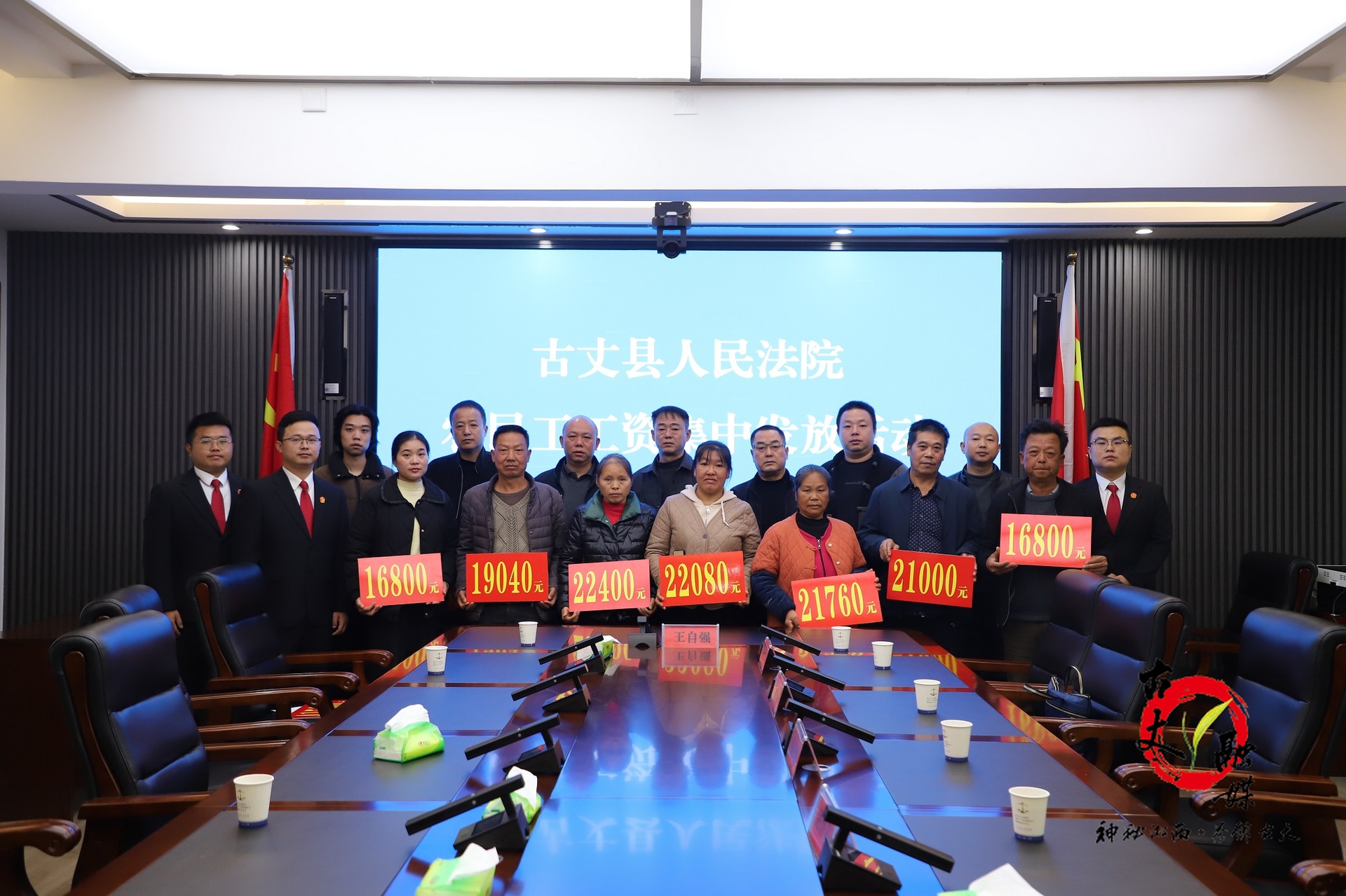 为提升司法透明度和公信力,12月10日,古丈县人民法院在案款发放环节主动邀请3名县人大代表、2名政协委员到场监督,确保案款发放过程公开、规范、有序。在代表委员的见证下,三十余万元工资款被逐一核对、现场发放至每一位农民工手中。