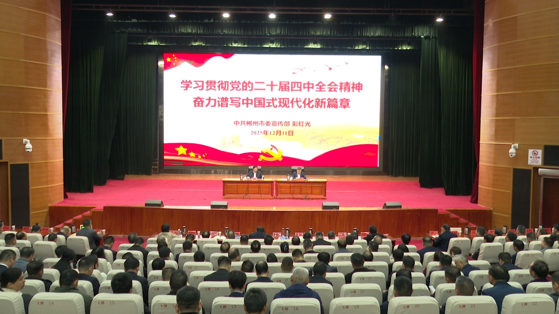 巫初华在主持时指出,要在学深悟透中把准精髓要义,把学习贯彻党的二十届四中全会精神,与贯彻落实习近平总书记关于湖南工作的重要讲话和指示批示精神、考察郴州重要讲话指示精神结合起来,与贯彻落实省委十二届九次全会精神、市委六届十一次全会精神结合起来,做到学思用贯通、知信行统一。要在宣传宣讲中推动入脑入心,把准宣讲基调,建强宣讲矩阵,创新宣讲方式,切实增强宣讲实效。要在知行合一中抓好贯彻落实,奋力打好“收官战”,聚力谋好“开局篇”,全力奋进“新征程”,把党的二十届四中全会作出的战略部署转化为桂阳高质量发展的实际成效,奋力开创桂阳各项事业发展新局面。