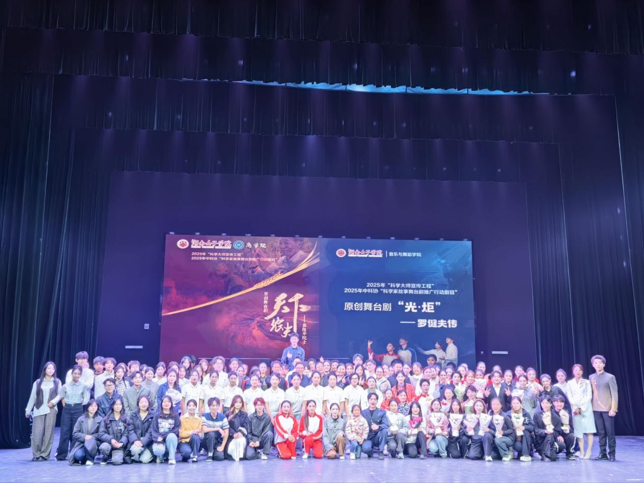 12月10日,湖南女子学院商学院联合音乐与舞蹈学院,在骄阳剧场成功举办2025年“科学大师宣传工程”及中国科协“科学家故事舞台剧推广行动”展演活动。现场座无虚席,掌声此起彼伏,一段段感人至深的科学家事迹通过舞台生动呈现,为师生带来一场融合科学精神与艺术审美的文化盛宴。