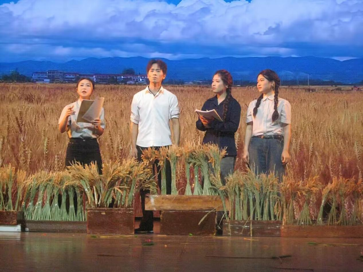 商学院创作演出的话剧《天下农夫》,以细腻的叙事和饱满的舞台表现,深情诠释了“杂交水稻之父”袁隆平院士躬耕田野、造福苍生的感人事迹。舞台上,金黄的稻穗意象贯穿始终,演员们通过真挚的表演,将袁隆平青年时的探索、科研攻坚期的执着、以及功成后的淡泊,层层递进地呈现于观众面前。一幕幕生动的场景,不仅重现了历史片段,更传递出“一粒种子 改变世界”的坚定信念,引得在场师生多次感动落泪。“这不仅是一次艺术创作,更是一次科研育人成果的生动转化,是学院‘一向二融三化’路径推动学科发展的生动实践。”商学院院长彭云飞如是说道。