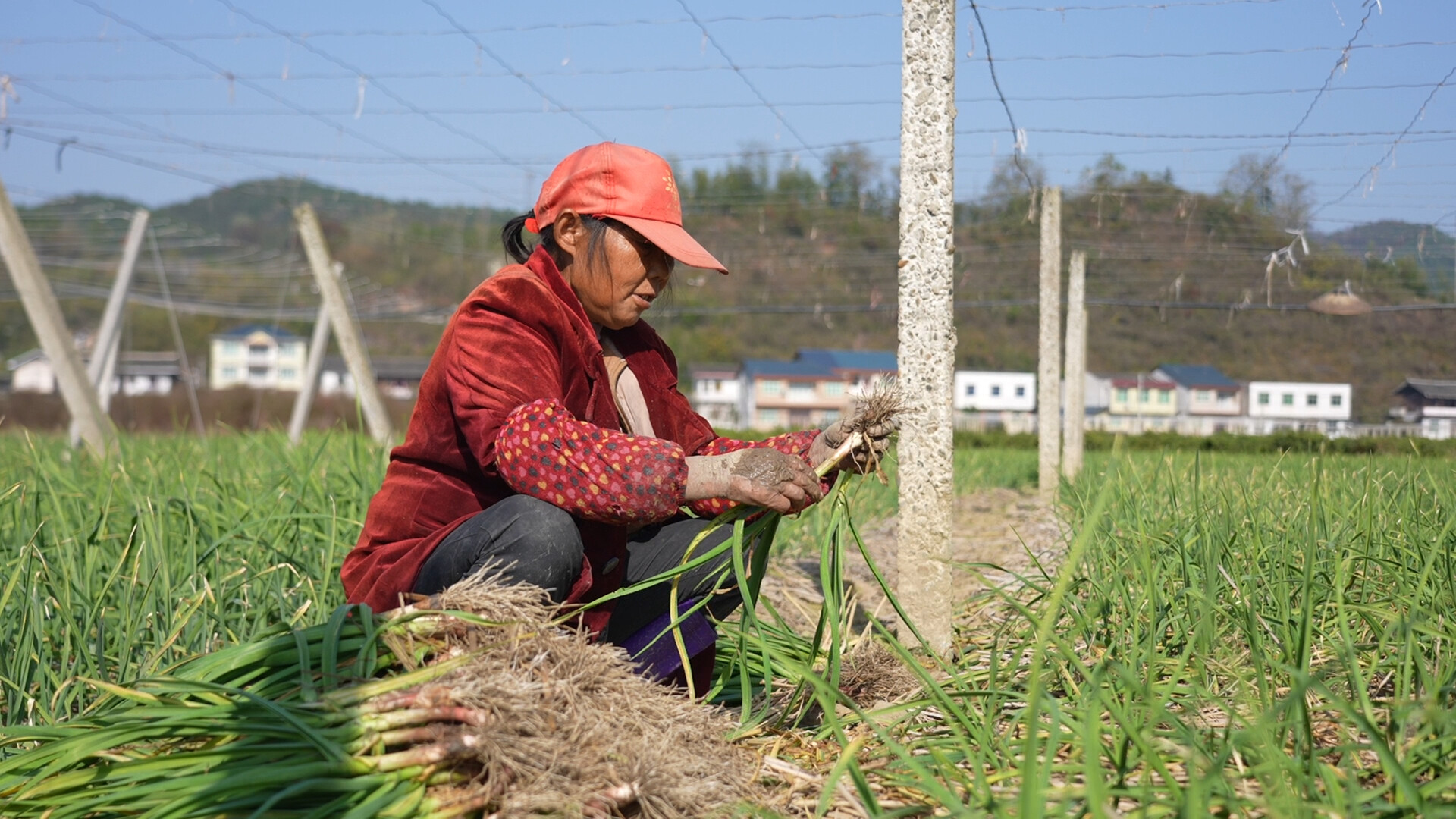 “我家种了四亩大蒜,一天能采一两百斤,现在能卖到五块钱一斤,算下来到年底能有八九万块钱收入。在家门口做事特别方便,不用外出打工,还能照顾家里的老人,日子过得踏实又舒心!”中方县桐木镇桐坪村菜农陈从梅高兴地说。