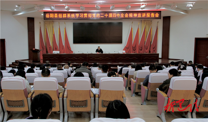 岳阳县融媒体中心12月16日讯(黄阳娇)12月15日,我县组群系统召开学习贯彻党的二十届四中全会精神宣讲会,以集中学习推动全会精神入脑入心,赋能公务员队伍建设。县委常委、组织部部长、县委党校校长方克君作专题宣讲报告并讲话。公务员在职培训班(第二期)全体学员、组群系统干部职工参会。