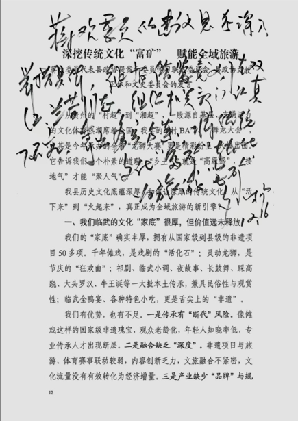 蒋欢委员的建议思考深入,举措具体,很有借鉴意义。请双红、兰芳同志,组织相关部门认真研究,拿出务实方案,将传统文化“富矿”转化为旅游“金矿”。