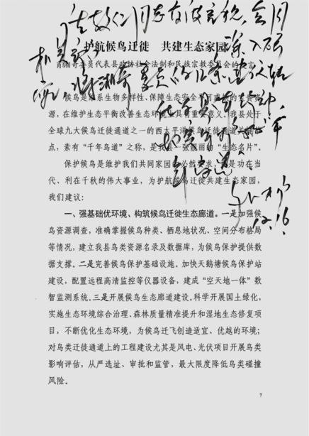请教仁同志高度重视,会同相关部门深入调研,将湘奇委员的几条建议转化为具体行动,切实守护“千年鸟道”。