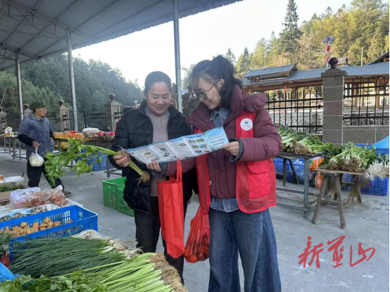 新蓝山客户端12月17日讯(通讯员 郭亦芝)12月17日清晨,荆竹瑶族乡荆竹村便民市场人头攒动,正值一年一度的“冬至前大集”。乡政法组联合司法所,把“利剑护蕾·守护成长”主题宣传搬进集市,让法律知识跟着农货一起“赶场”。