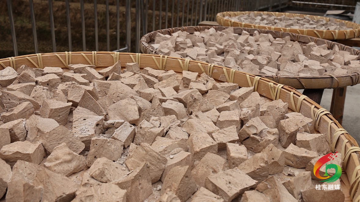 装好淀粉浆的木桶,需要静静放置两日。这两天里,每日都要更换清水,让浆液中的杂质与涩味慢慢析出。时光在静置中悄然流淌,直至桶底凝结出一层洁白细腻的湿粉块。这时,王绍雄便会和家人一同,小心翼翼地将湿粉块取出,均匀铺在竹席上,置于院中通风向阳处自然晾晒。