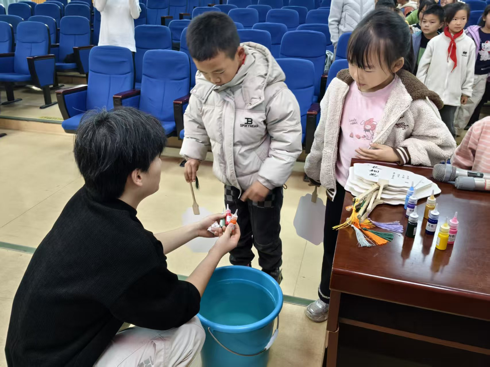 活动伊始,结对仪式温情启幕。“青梧·共生园”志愿者与直荀学校10名留守儿童现场结对,为孩子们送上暖心文具礼包。团队教师化身“爱心妈妈”,与孩子们一对一促膝长谈,细致询问学习生活近况,用暖心话语纾解心结,用点滴行动传递温情;学生志愿者以“知心姐姐”身份相伴左右,为孩子们打造了一场融文化浸润、科技启蒙、暖心陪伴于一体的特色成长盛宴,现场暖意融融、童趣盎然。
