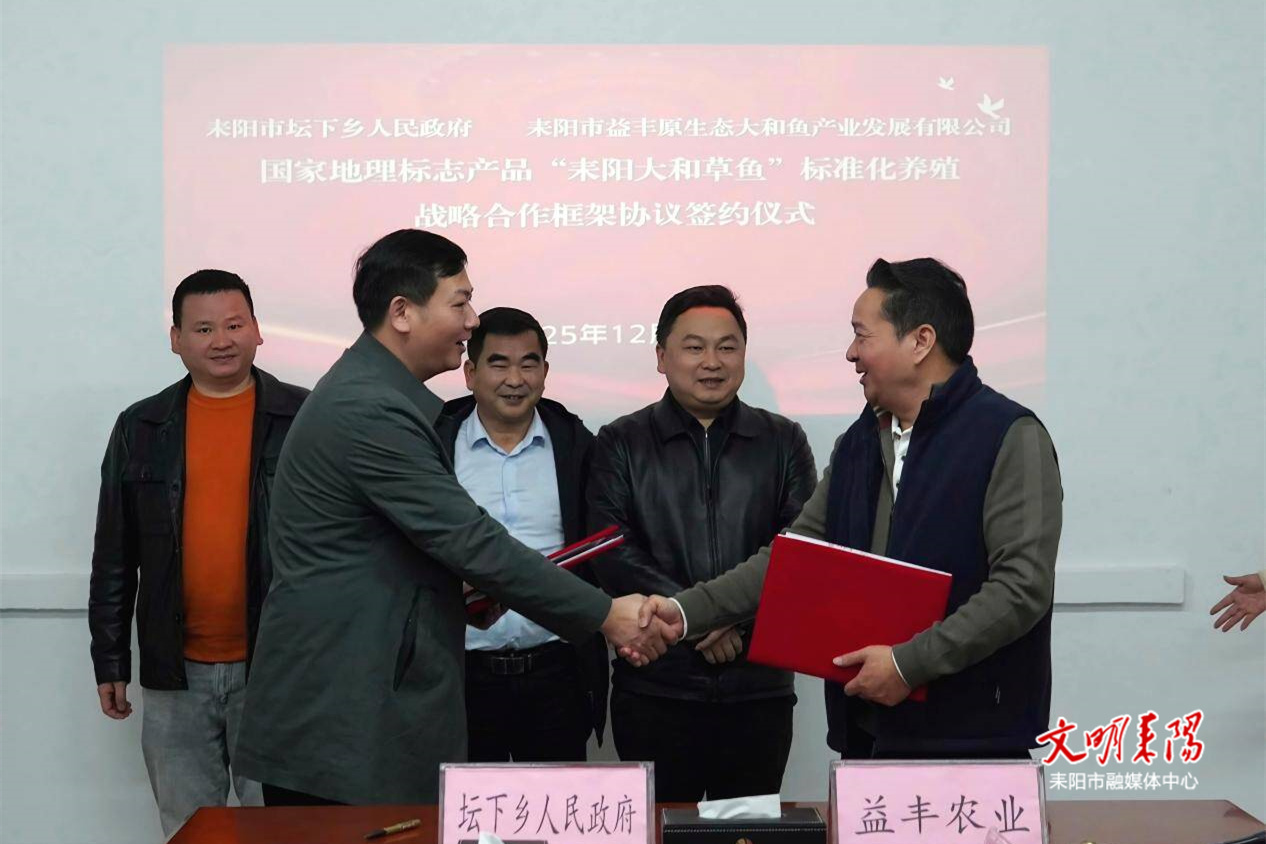 耒阳融媒12月23日讯(记者 赵娟 通讯员 郭富成)12月22日,坛下乡人民政府与耒阳市益丰原生态大和鱼产业发展有限公司正式签署战略合作协议,标志着双方在农业产业化、生态养殖及乡村振兴领域迈出实质性步伐。
