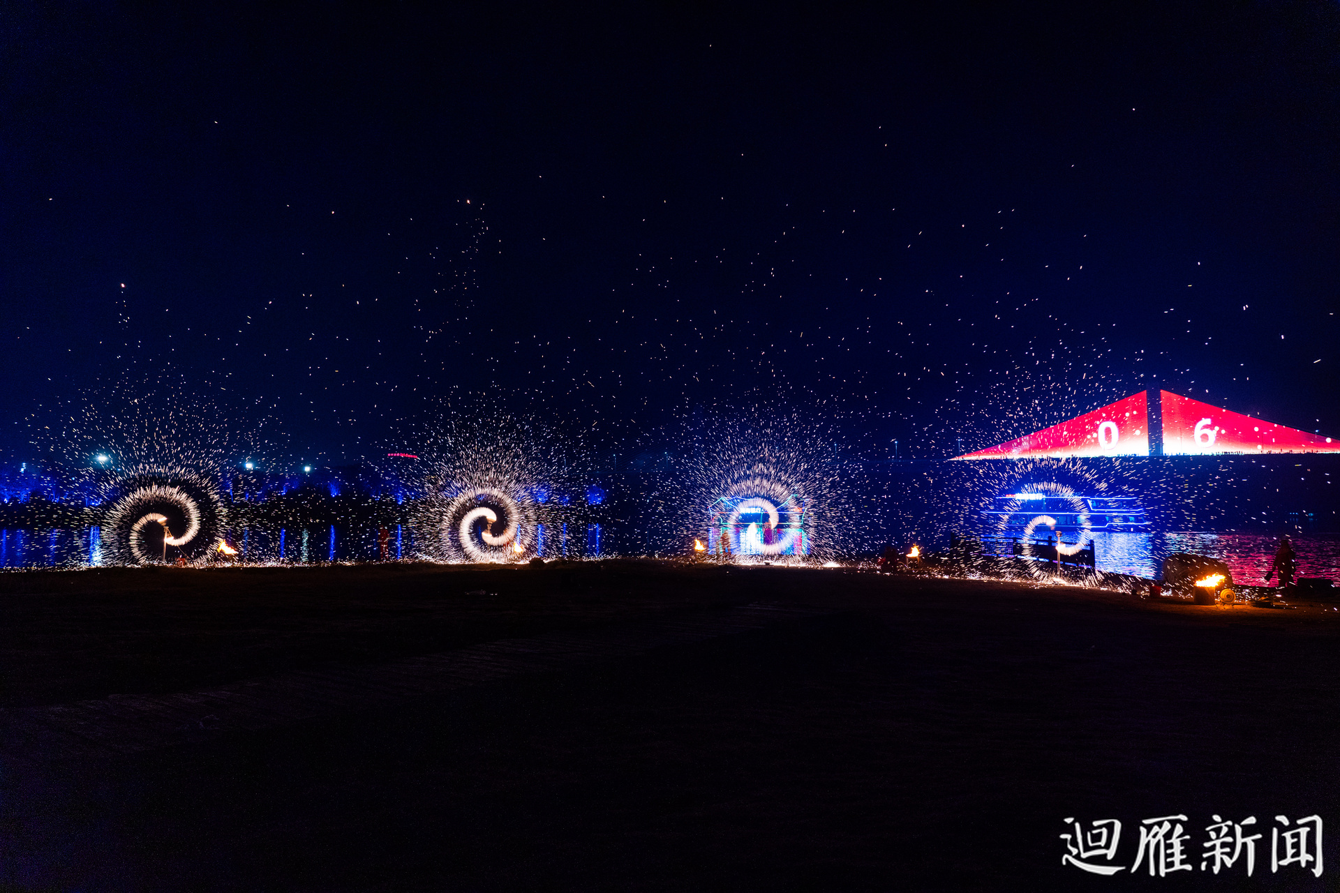 惊险刺激的“水上飞龙”火舞秀同步上演
