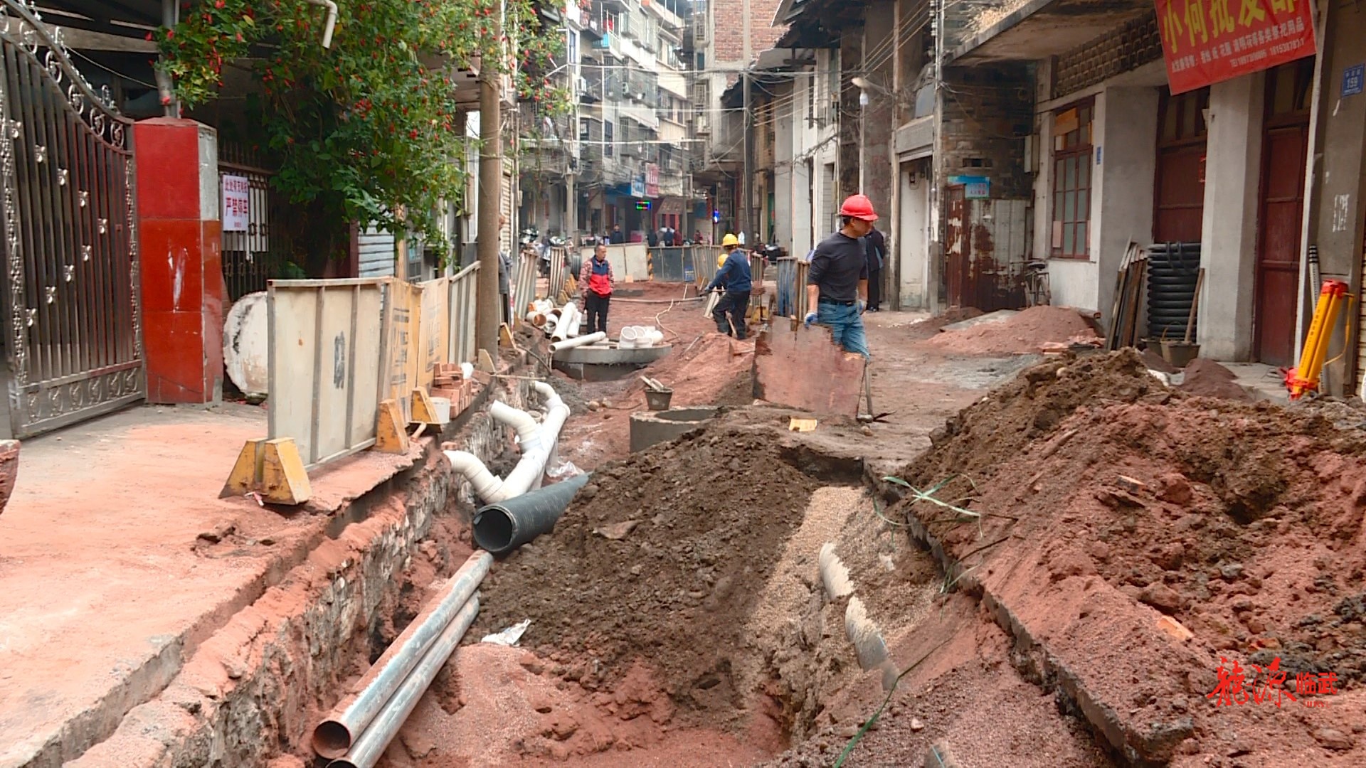 走进舜峰镇中河街南门口路段改造现场,施工人员正忙着对近三米深的施工深坑进行沙土回填。为减少对居民出行的影响,该路段改造采用“边掘进、边铺设、边回填”的分段施工模式,目前整个中河街地下污水收集管网建设已完成90%,与此同时,县正街、县左街等旧城区干道已完成路面硬化。