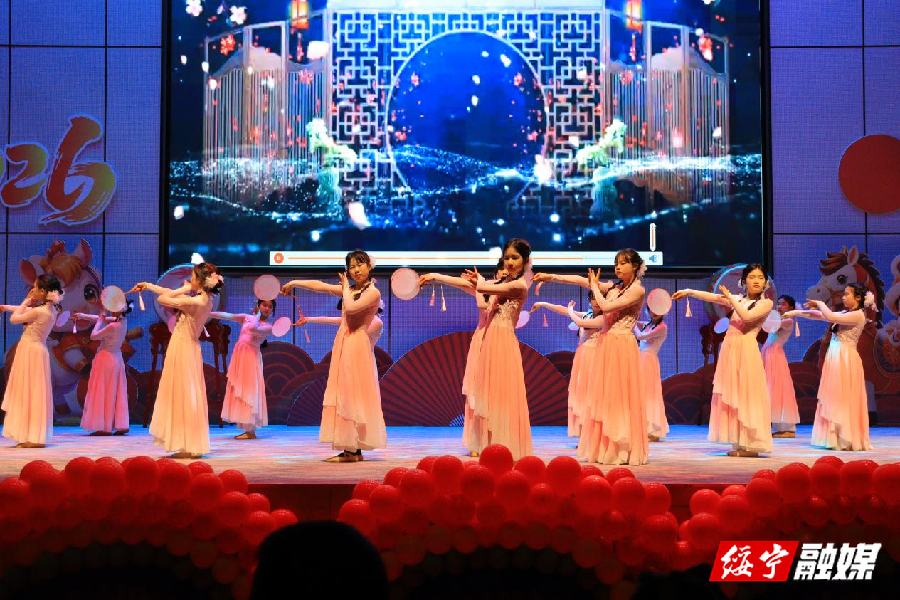 新绥宁客户端12月30日讯(通讯员 杨光义 向华明)12月28日至29日晚,绥宁县第二中学体艺馆内华灯璀璨,“骏马腾飞,共启新程”2026年元旦文艺汇演在这里盛大举行。全校师生欢聚一堂,用青春的热情迎接新年的到来。
