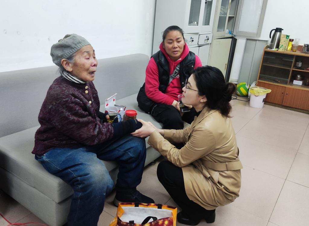2023年3月,白鹿洞街道两名社区居民登门感谢陈娟娟(右一)为其调解矛盾、追回欠款。(受访者供图)