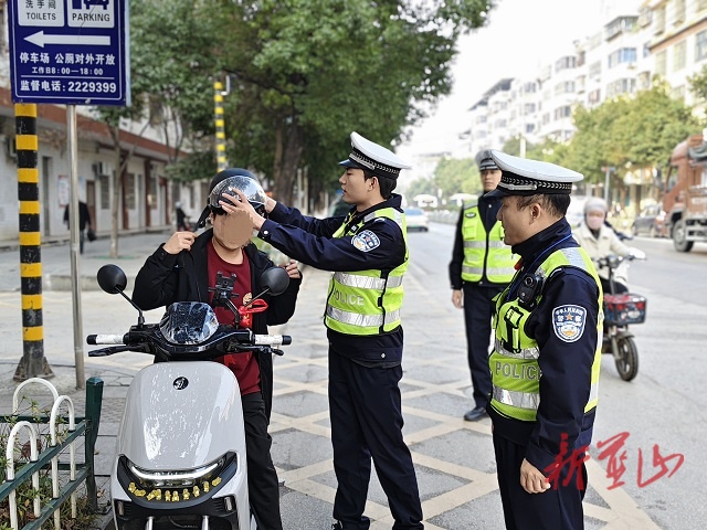 “您好,骑乘电动自行车请戴好头盔。”执勤民辅警通过发放提示小卡片,对途经国省道车辆驾驶员进行耐心提醒劝导,结合案例讲解违法危害,引导驾驶员自觉遵守交通法律法规,树牢谨慎驾驶、平安出行理念。