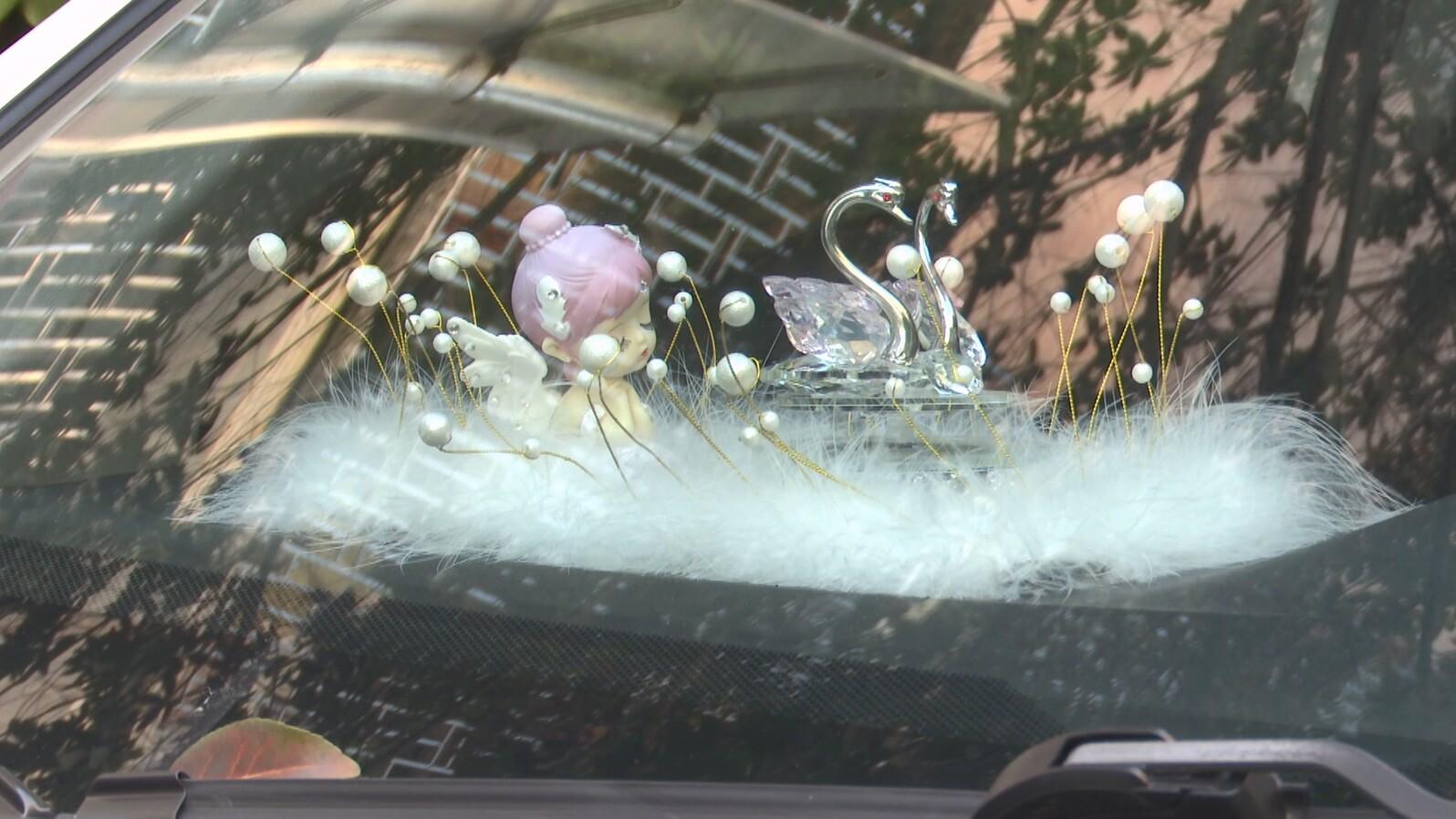 走访县内多个停车场、商圈路段发现,不少车主都有在车内摆放装饰物品的习惯。部分车辆的后视镜等上悬挂着吊坠、平安符等饰品,中控台被玩偶、摆件、车载香薰等堆满,甚至有车主在挡风玻璃处放置大型毛绒玩偶,将方向盘包裹上厚实的毛绒方向盘套。这些看似个性美观的装饰,实则暗藏着不小的安全风险。