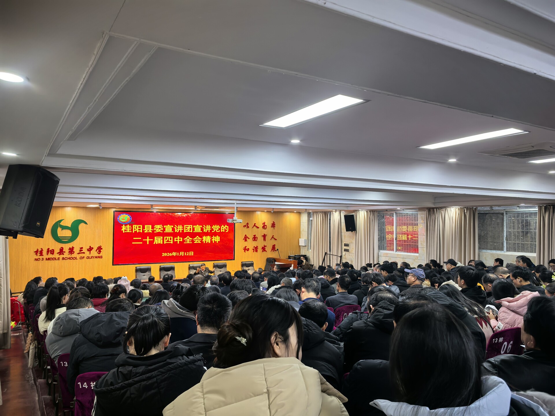 新桂阳1月13日讯(记者 刘娣)1月12日,学习贯彻党的二十届四中全会精神县委宣讲团报告会在桂阳三中举行。县委宣讲团成员彭国春以《“十五五”时期经济社会发展的行动指南》为题作专题宣讲。