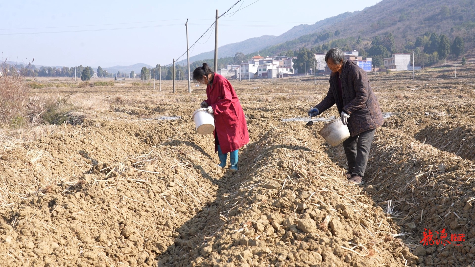 在汾市镇横上村,一丘丘烟田已经翻耕完毕,村民正在进行施肥作业,田间地头,一派繁忙的劳作景象。