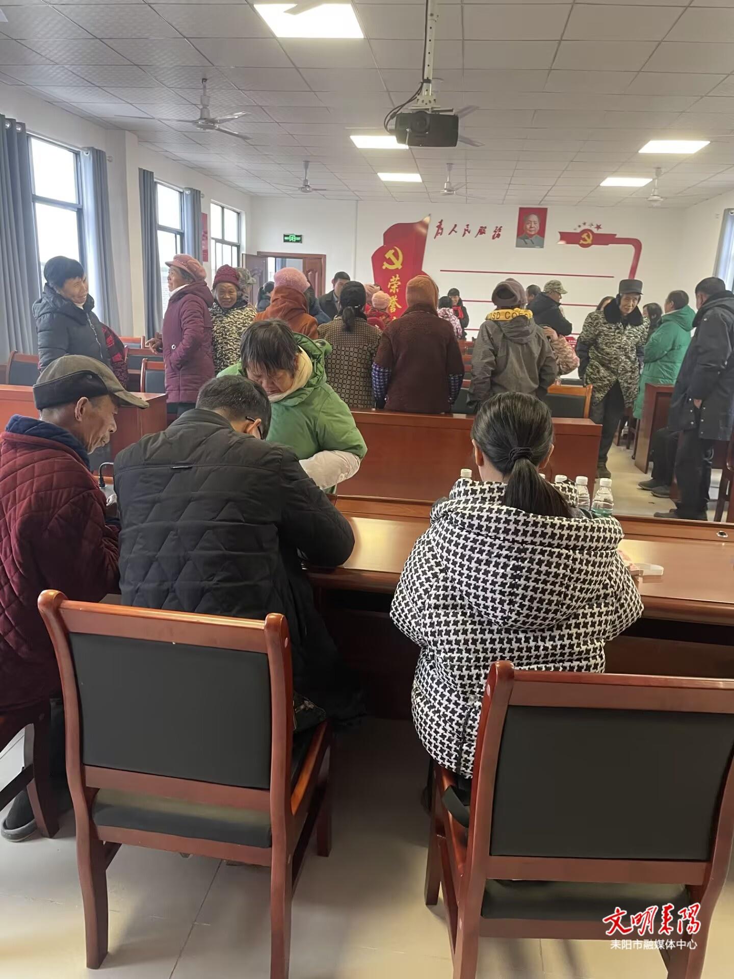 耒阳融媒1月26日讯(记者 杨明涛 通讯员 黄荣)今天是腊八节,过了腊八就是年。在南阳镇金星村便民服务大厅内,40余名村民排起整齐的队伍,脸上漾着藏不住的喜悦,依次领取在本村千亩岗梅药材基地务工的“年终薪金”。一沓沓崭新的百元现金在掌心传递,不仅驱散了零度寒冬的凛冽,更点燃了乡亲们增收致富的热切期盼,让这个冬日因“薪”而暖、因“心”而热。