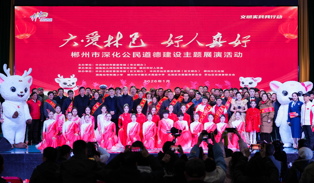 1月24日下午,由中共郴州市委宣传部(市文明办)主办,湘南幼儿师范高等专科学校与郴州市好人协会联合承办的“大爱林邑・好人真好”郴州市深化公民道德建设主题展演活动,在该校演艺中心圆满落幕。郴州市委常委、市委宣传部部长龙齐阳,湘南幼儿师范高等专科学校党委副书记、校长张华,市直有关单位分管负责人、各县市区文明办负责人、好人典型代表、师生代表及社区居民等400余人齐聚一堂,共赴一场崇德向善的精神盛宴,共沐好人精神的道德光辉。