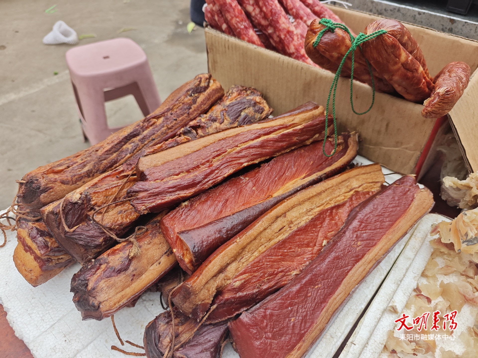 耒阳融媒2月1日讯(记者 贺智 匡经强 实习记者 王欢 雷亚轩 欧阳资洁)腊月十二,晨曦微露。大市镇的圩场早已人声喧腾。红彤彤的春联、水灵灵的果蔬、油亮亮的腊味、热腾腾的糕点……各色年货琳琅满目,交织的香气与喧闹的人声,共同勾勒出一幅鲜活生动的乡村年俗长卷。