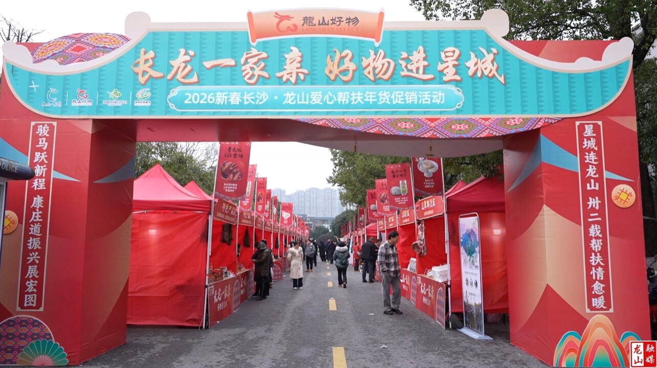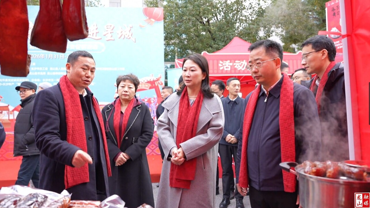 龙山县融媒体中心2月1日讯(记者 王涯彬)星城长沙暖意融,长龙情深年味浓。2月1日上午,“长龙一家亲 好物进星城”2026年长沙•龙山爱心帮扶年货促销活动开幕式在长沙市政府机关大院市会议中心南侧举行。此次活动旨在进一步深化长沙对口帮扶龙山情谊,推动龙山优质农特产品走进星城市场,助力乡村振兴。长沙市委副秘书长、市委办公室分管日常工作副主任黎明,长沙市委组织部分管日常工作副部长王妍,长沙市委统战部副部长、市工商联党组书记何惠风,湖南省供销集团董事长聂志军,湖南省供销集团副董事长唐俊韬,龙山县委副书记、县长周胜益,副县长、长沙市对口帮扶龙山县工作组组长谭磊出席活动。