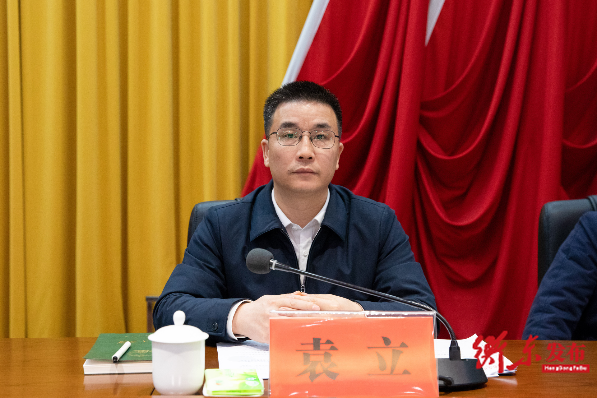 图:县委副书记、代县长袁立主持会议