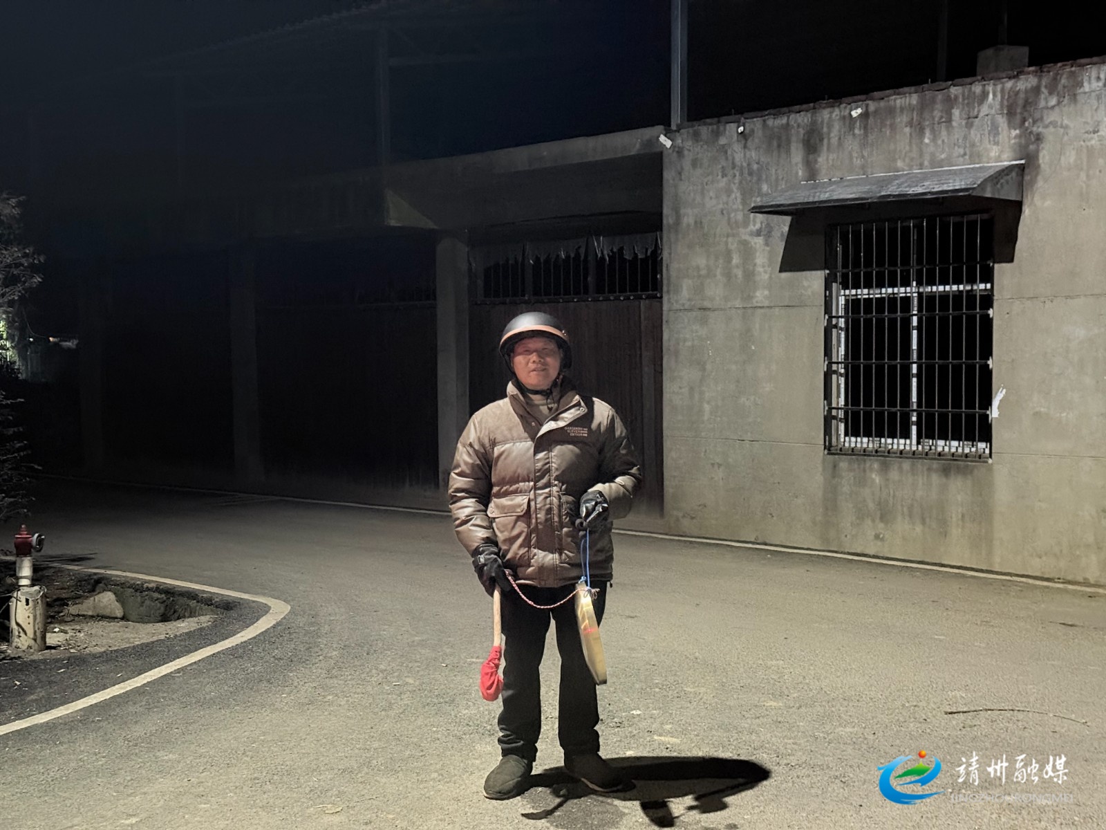 工作人员进行“夜间打更提醒”工作(吴悦 摄)