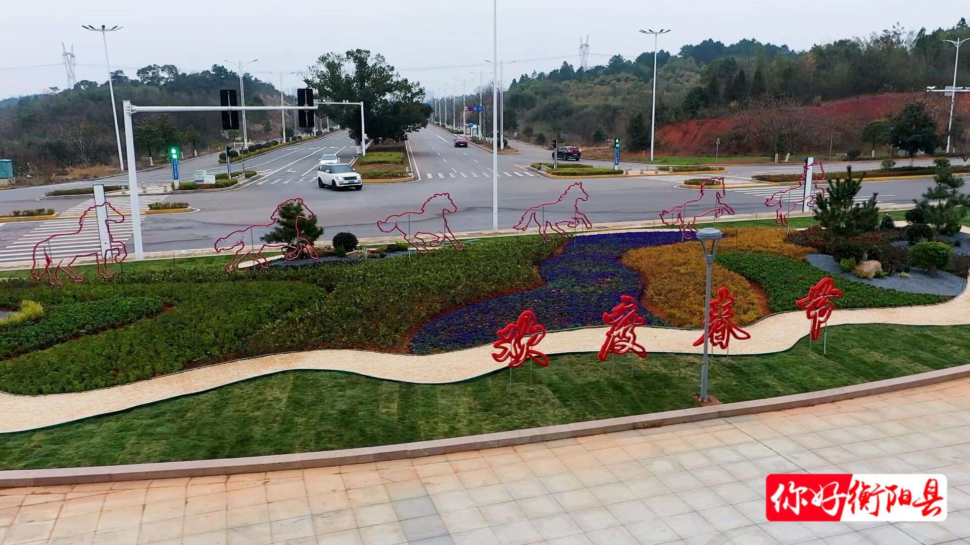 花坛中央,“蒸水流转” 的意象设计巧妙融入,潺潺流水与灵动花景相映成趣,既展现了我县的地域特色,更寓意着新的一年里,全县各项事业发展将如骏马奔腾般一往无前,蒸蒸日上。
