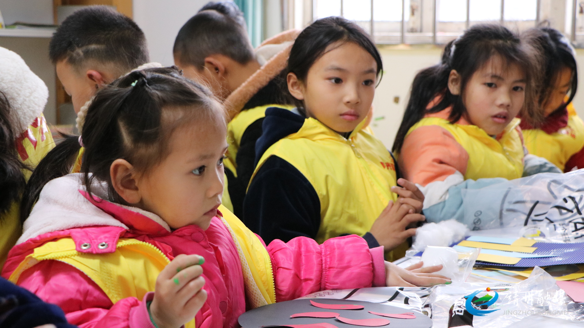 太阳坪乡地芒村阳光驿站内同样暖意融融、欢声笑语。志愿者们手把手指导孩子们利用彩纸、剪刀、胶水开展创意手工制作,孩子们专注投入、相互协作,一件件精美的作品接连诞生。大家举着亲手制作的作品,脸上满是成就感与喜悦感。