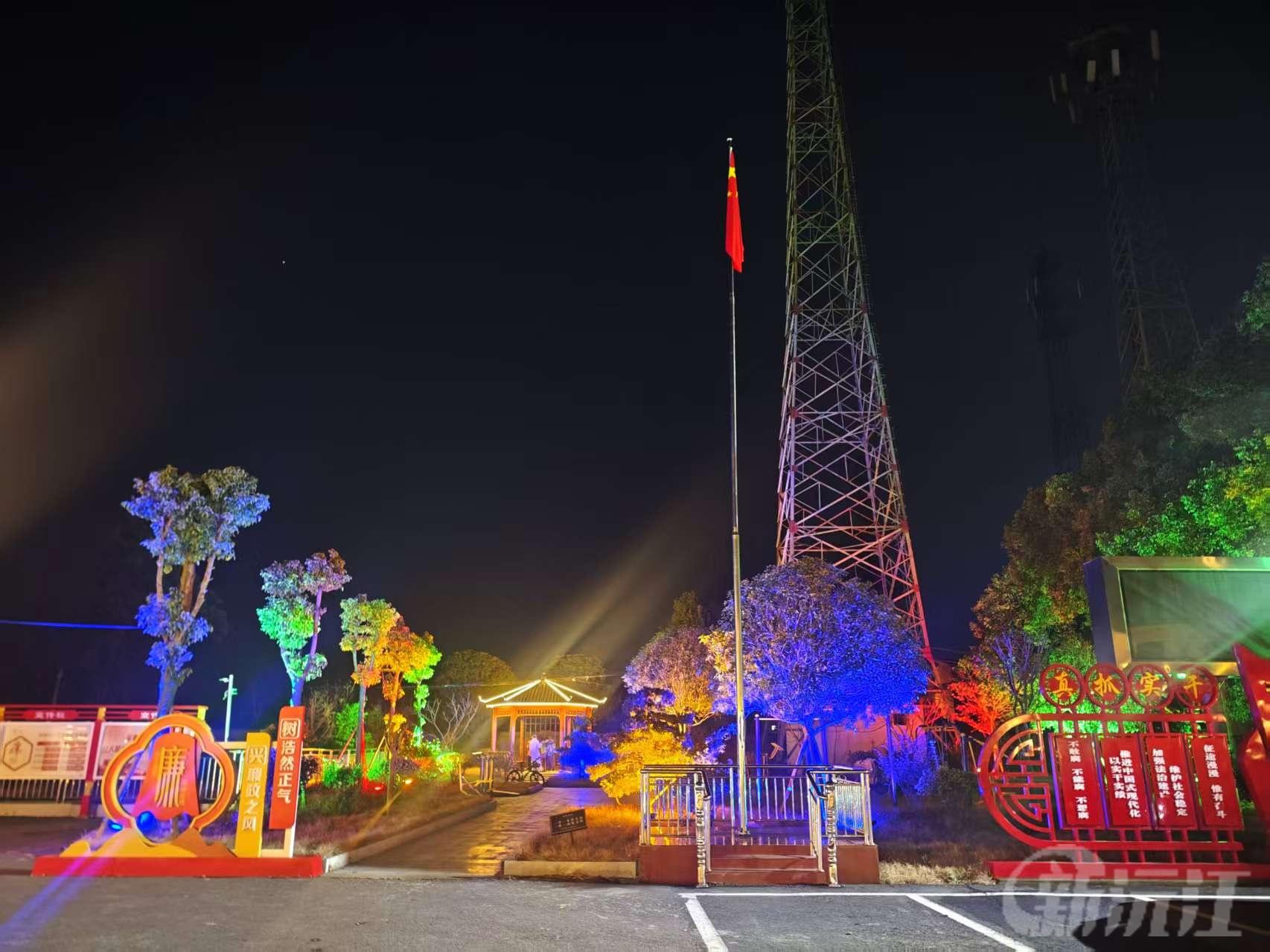 主干道乐漉线沿线,鲜艳的五星红旗与一串串大红灯笼相继悬挂,形成红色景观线。中心休闲花园内,各式彩灯、射灯错落有致,夜幕下流光溢彩,成为居民夜晚散步、休闲的好去处。在中心街道两旁的树木及主要桥梁上,缠绕起暖色灯串,入夜后灯火通明,在美化夜景的同时,也便利居民夜间出行。