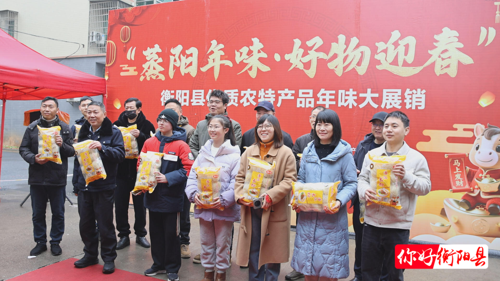 衡阳县融媒2月12日讯(记者:姚康 见习记者:王锦)2月12日,县农业农村局、县融媒体中心携手举办优质农特产品年味展销活动,将琳琅满目的地道年货送到市民“家门口”,让大家在便捷采购中寻回记忆里的浓浓年味。