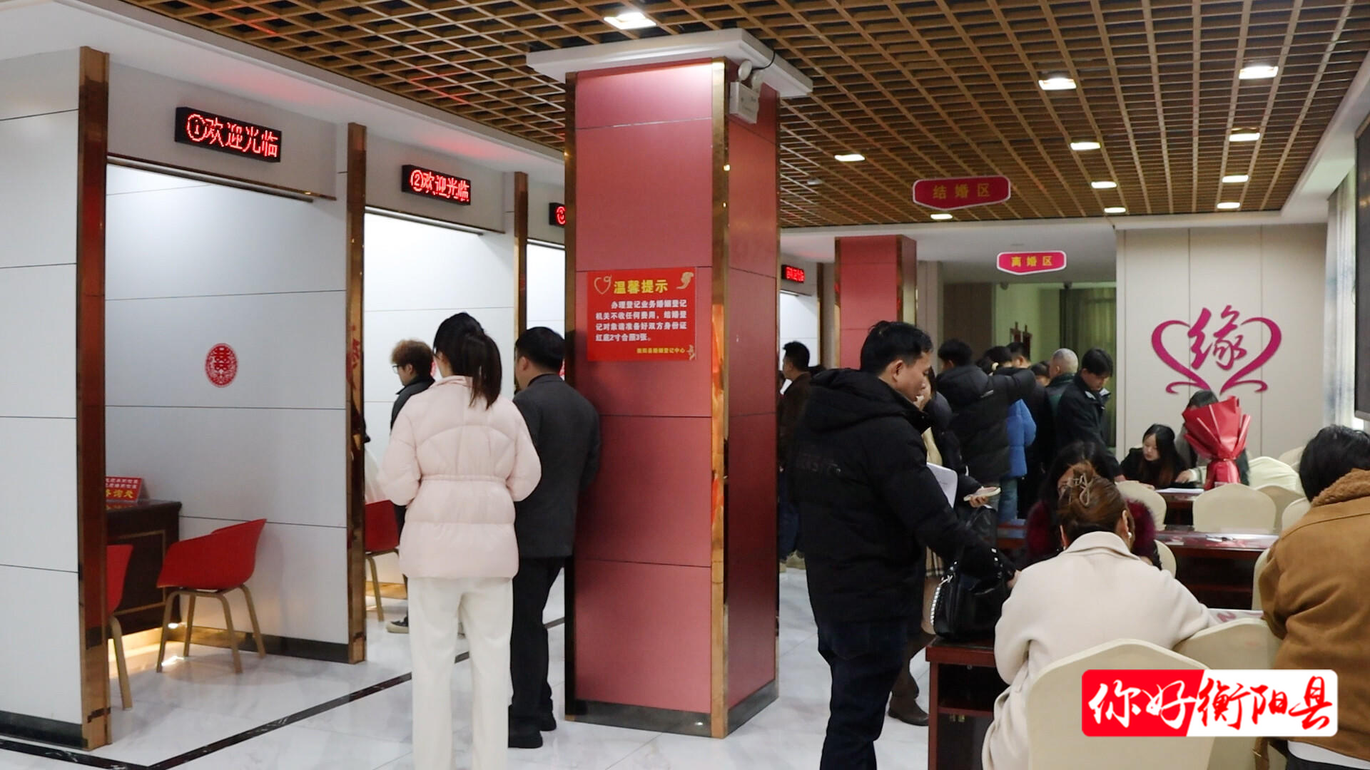 衡阳县融媒2月14日讯(记者:刘沛林 见习记者:邹洁清 王锦)2月14日,情人节恰逢春节前夕,县婚姻登记中心迎来春节前结婚登记高峰,不少新人选择在这个寓意美好、双喜临门的日子携手领证,让爱情在团圆时节定格最美模样。