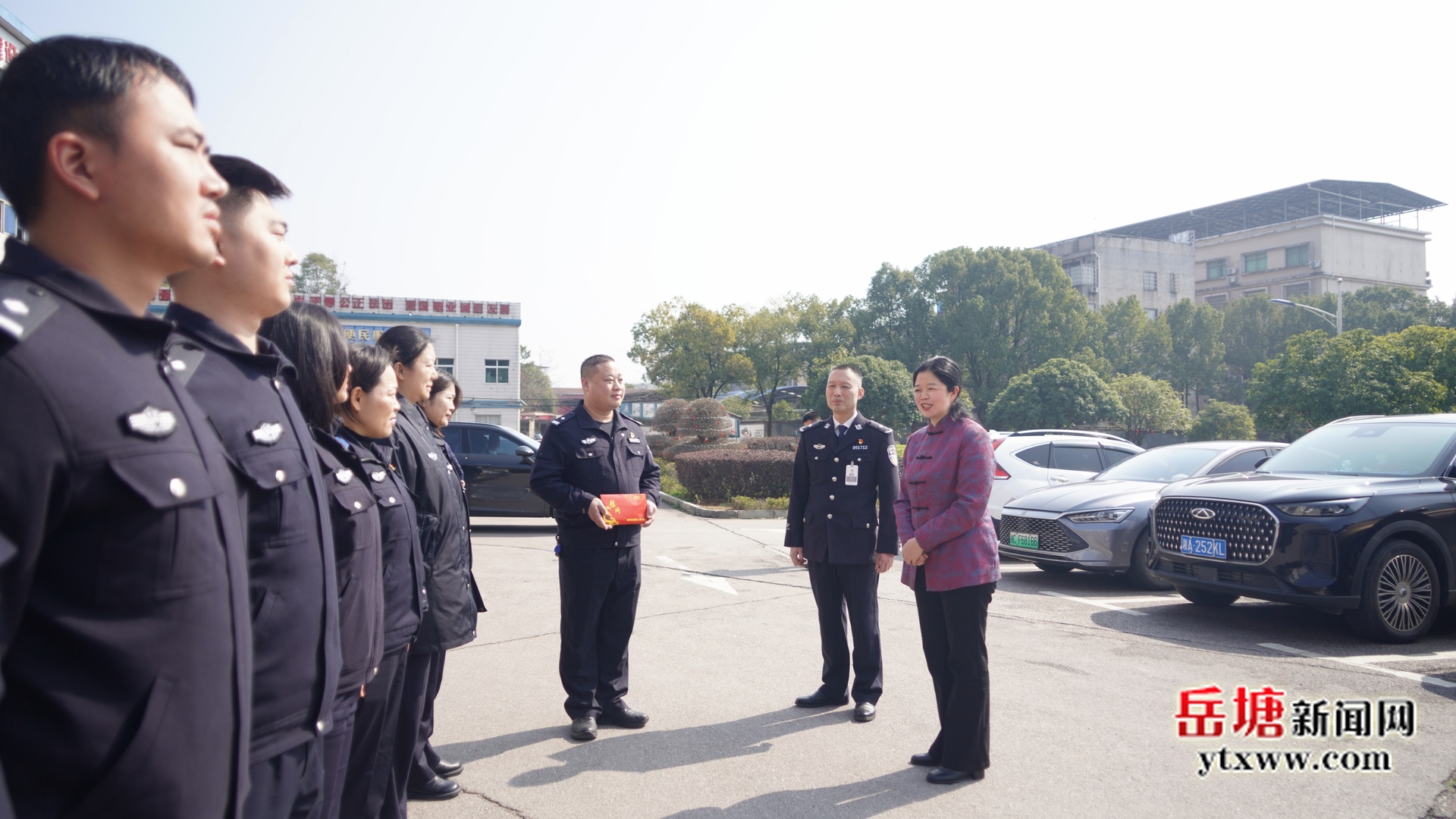 “大家辛苦了!”在岳塘交警大队、五里堆派出所、双马派出所、板塘快警站,周赏玲慰问了基层干警,感谢他们始终坚守岗位,为社会的安定、人民的安宁舍小家为大家。周赏玲勉励大家忠诚履职、主动担当,为维护全区社会稳定大局再立新功。