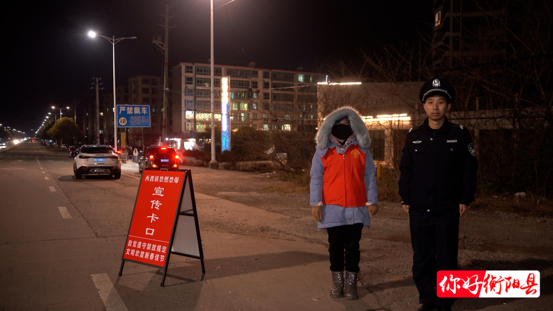 夜幕降临,华灯初上,洪山桥、船山广场、向阳桥等人员密集区域随处可见身着红马甲的志愿者身影,流动宣传车循环播放禁燃禁放宣传语,将禁燃政策与安全理念传递到街头巷尾、深入人心。