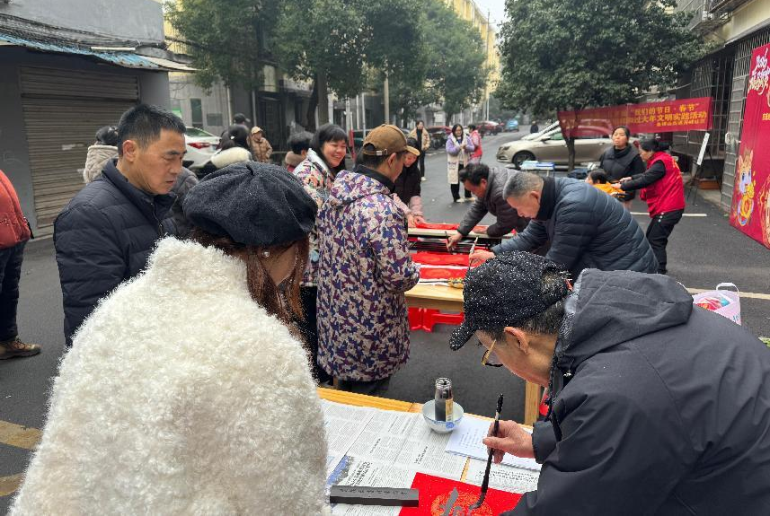 金银山街道组织文化志愿者开展“笔墨送福暖人心爱心服务迎新春”主题活动