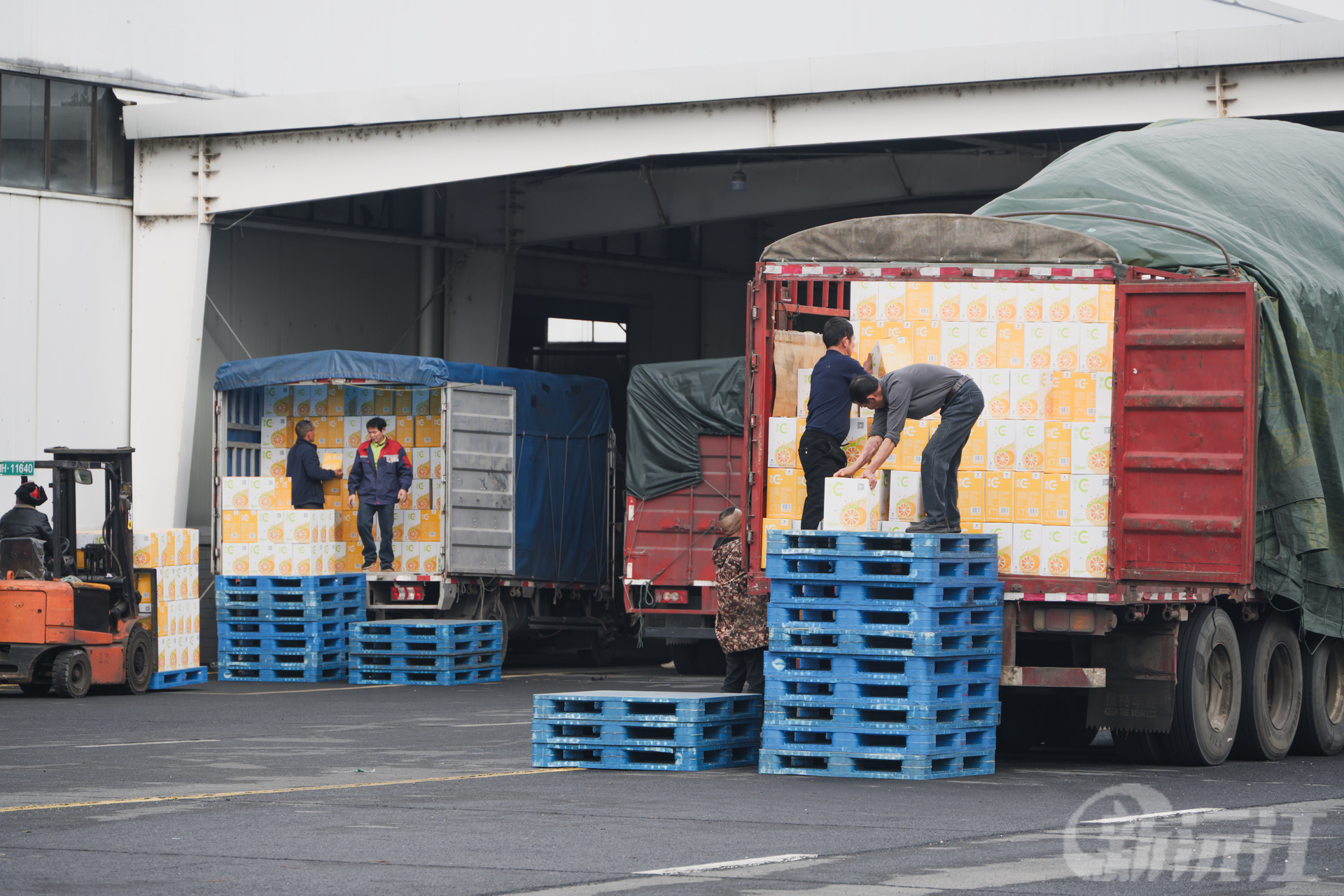 在辣妹子食品股份有限公司仓储车间里叉车来回穿梭、高效运转,稳稳运送着一箱箱果粒橙、桔片爽等产品;工人们分工明确、配合默契,有条不紊地将包装完好的产品搬运至货运车辆上,这些满载着美味的货物将火速发往湖北等地市场,全力保障终端供应。