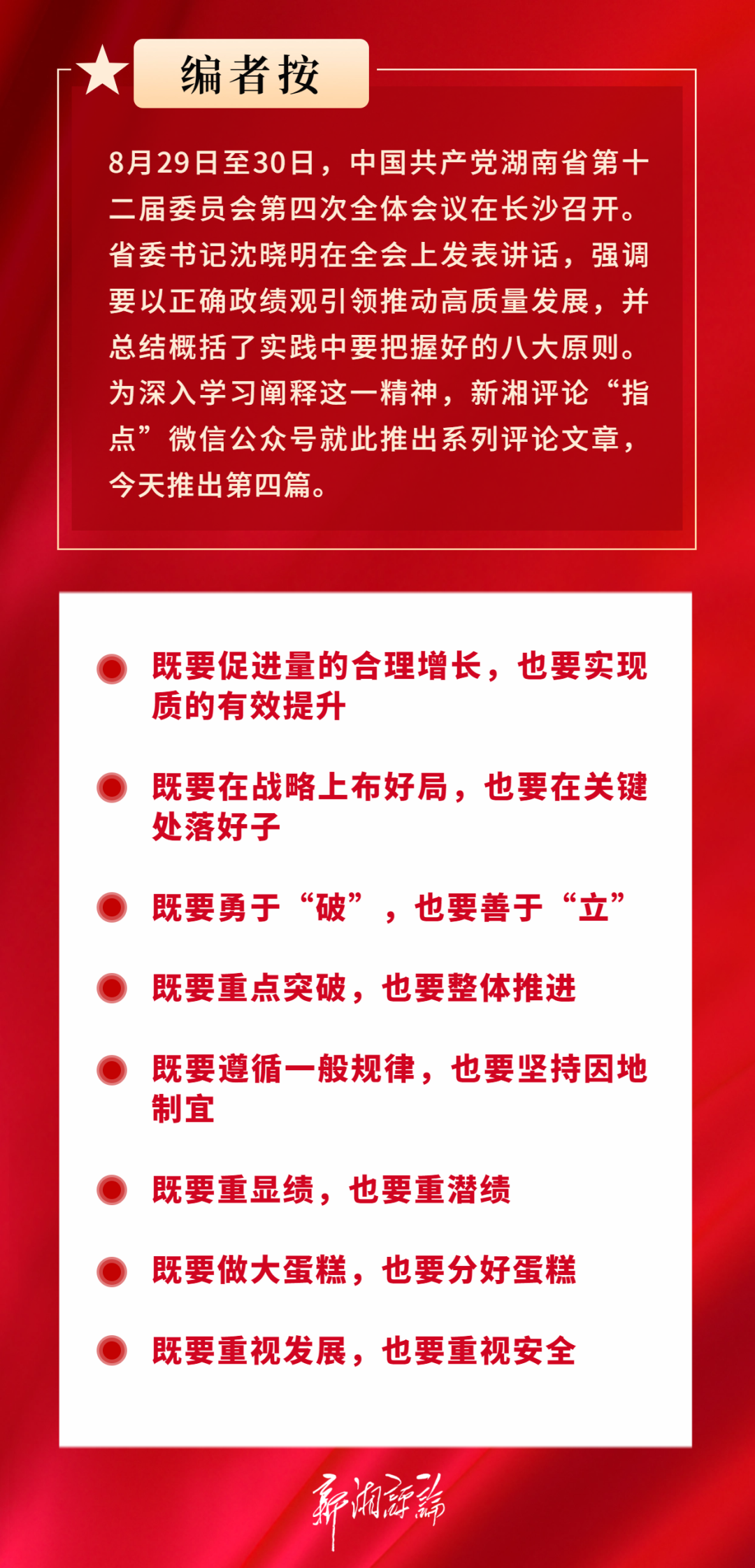 政绩观正确与否,不仅影响到干部个人的健康成长,更关系到党和人民事业发展。在8月29日-30日召开的省委十二届四次全体会议上,省委书记沈晓明提出了以正确政绩观引领高质量发展的八条原则。其中一条内容是:既要遵循一般规律,也要坚持因地制宜。