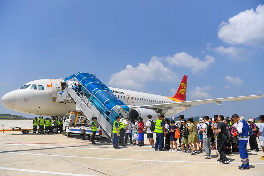 8月18日,旅客正在登机。当天,湘西土家族苗族自治州边城机场正式通航。
