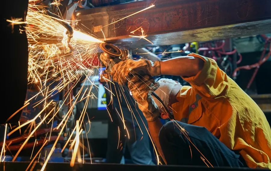 9月6日凌晨,京广高铁株洲西至衡山西区间,铁路工人在打磨轨道。