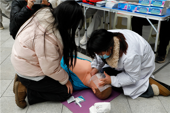 “黄金四分钟,你会做心肺复苏吗?”校团委开设的“‘救’在身边”校园急救知识宣讲摊位被围得里三层外三层。志愿者们利用模拟人,一边讲解一边演示,从胸外按压到人工呼吸,每一个细节都力求精准。不少同学在指导下亲自上手操作,现场学习气氛热烈。“学了急救技能,关键时刻能救命,这种志愿服务太硬核了!”物联网25-1班的杨娟华擦着额头的汗说道。