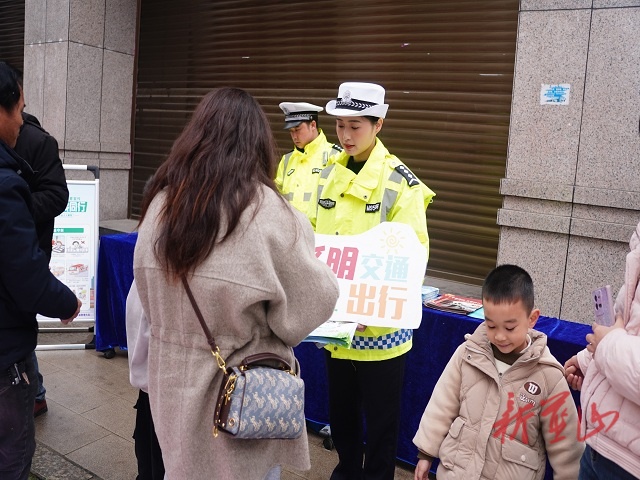 “帅哥,遇到心仪的对象固然开心,但喝了酒可一定要记得找代驾!”“美女,骑电动车戴上头盔,既是安全守护,也是最美‘发饰’哦!”……宣传民警以轻松幽默的话语,将严谨的交通法规化为亲切的叮咛,引来阵阵掌声。