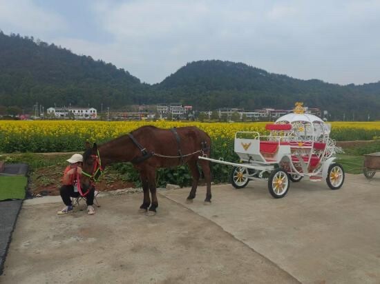 在油菜花海旁设有安全专属骑马体验路线,用醒目标识划分骑行区、等候区,合理引导人流,让游玩更有序、更安心。现场提前备好温顺骏马与精致马车,经验丰富的驾驶人员全程陪护,为游客保驾护航。伴着春风与花香,策马漫步金色花海之间,沉浸式感受田园野趣与自由浪漫,尽享独一无二的春日骑行乐趣。